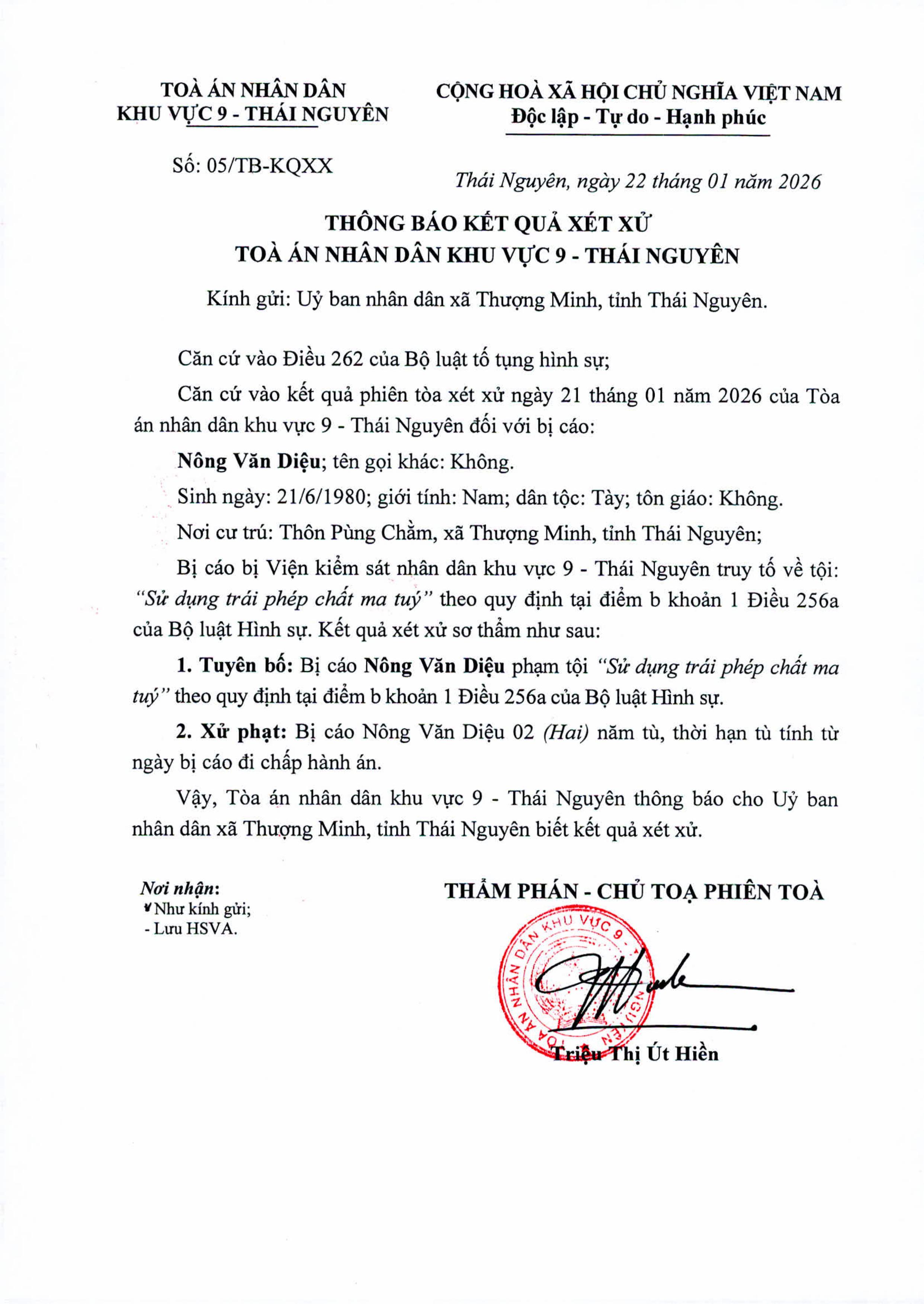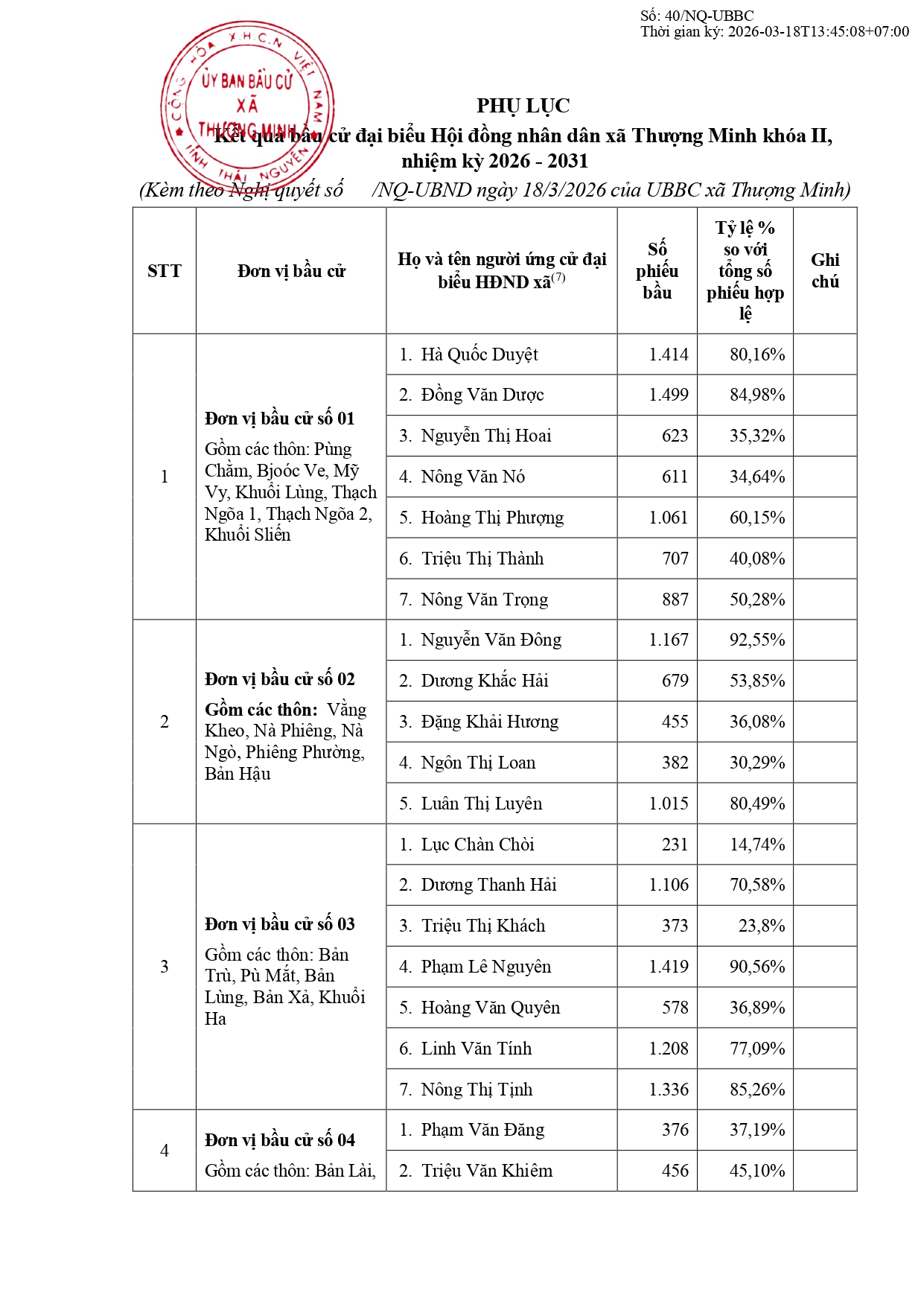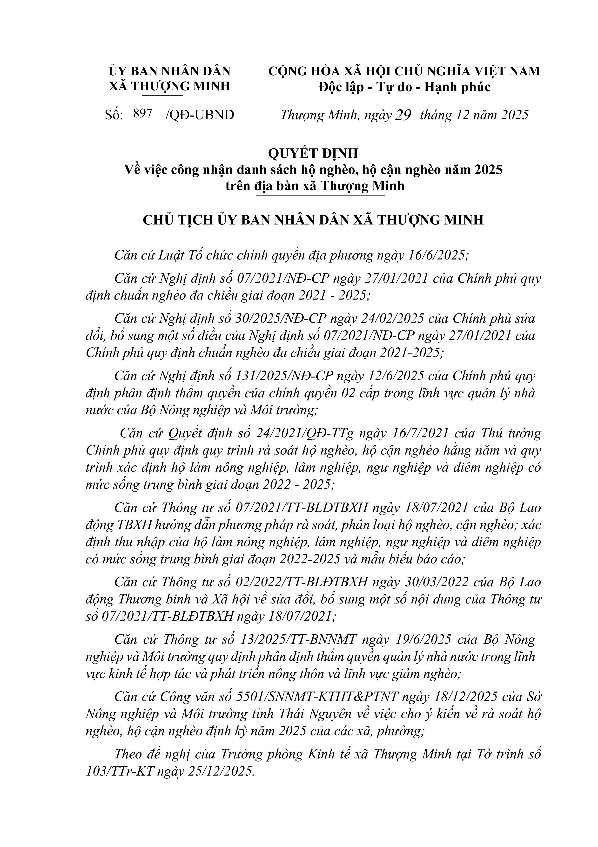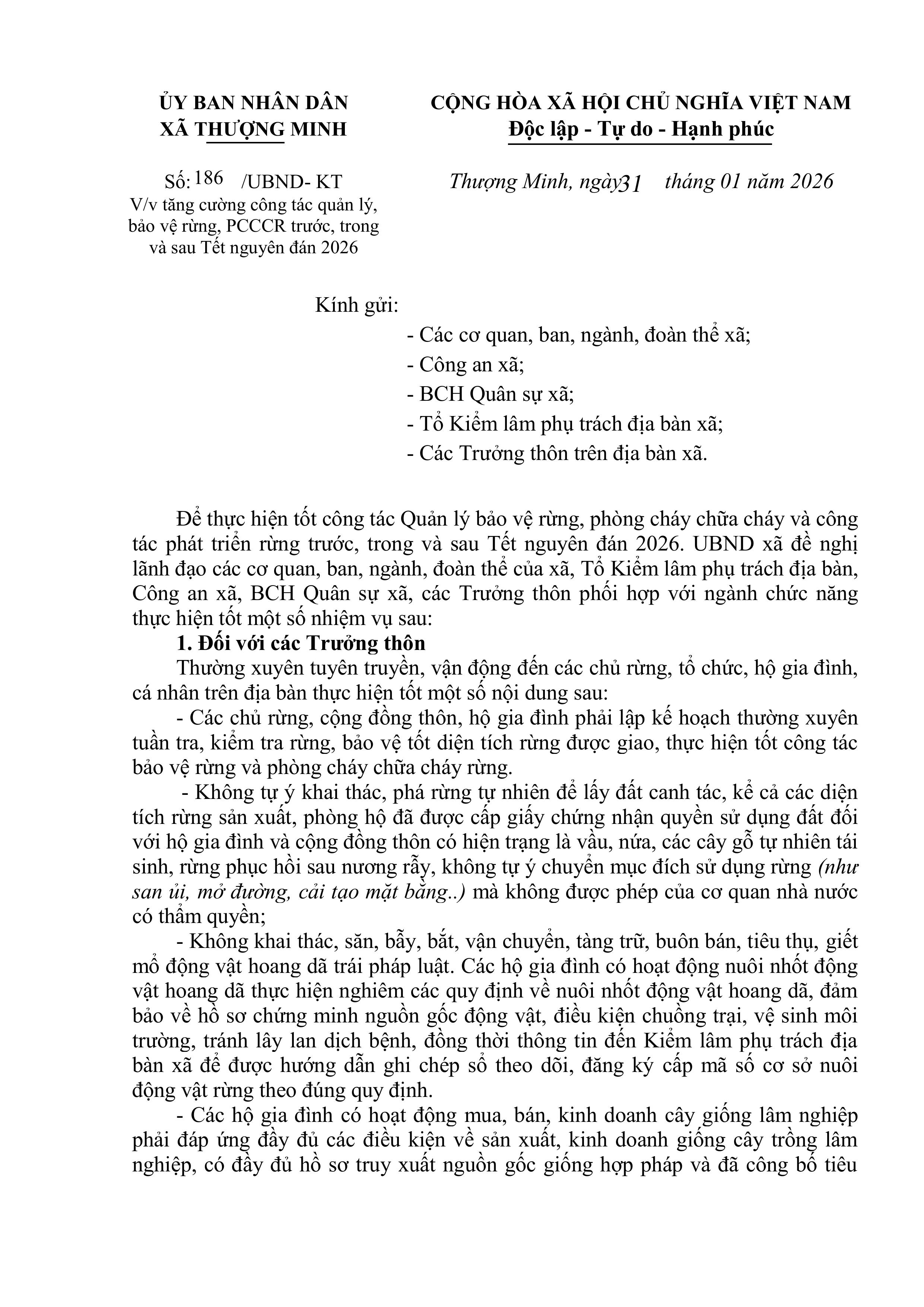 Ủy ban nhân dân xã Thượng Minh thông báo: