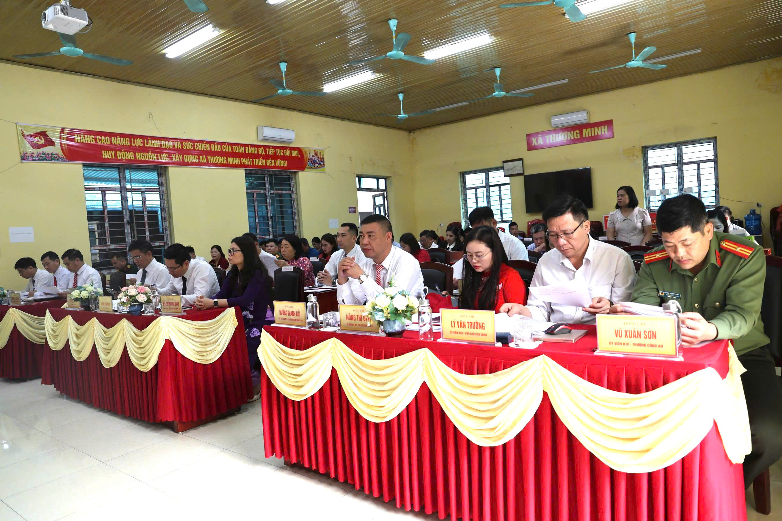 Phát biểu nhận nhiệm vụ, đồng chí Mã Thị Thương Oanh, Phó Bí thư Thường trực Đảng ủy, Chủ tịch HĐND xã khóa II và đồng chí Hoàng Văn Minh, Phó Bí thư Đảng ủy, Chủ tịch UBND xã, nhiệm kỳ 2026 - 2031 đại diện cho các đồng chí được bầu giữ các chức danh chủ chốt bày tỏ sự cảm ơn sâu sắc trước sự tin tưởng của cử tri trong xã, đồng thời khẳng định sẽ tiếp tục nêu cao tinh thần trách nhiệm, đoàn kết, thống nhất, không ngừng học hỏi, rèn luyện, nâng cao năng lực lãnh đạo, điều hành; phát huy dân chủ, lắng nghe ý kiến Nhân dân, tập trung chỉ đạo thực hiện thắng lợi các mục tiêu phát triển kinh tế, xã hội, đảm bảo quốc phòng, an ninh tại địa phương. Các đồng chí cũng cam kết sẽ cùng tập thể lãnh đạo xã Thượng Minh xây dựng chính quyền trong sạch, vững mạnh, hoạt động hiệu lực, hiệu quả, đáp ứng yêu cầu, nhiệm vụ trong giai đoạn mới.