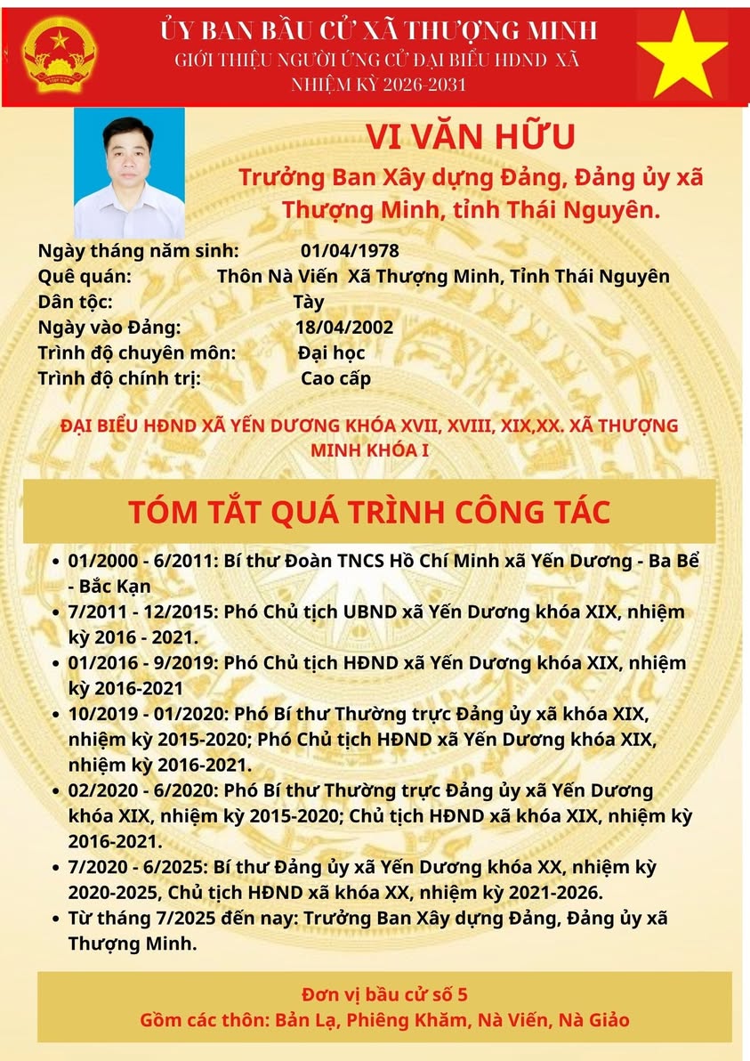 Tiểu sử tóm tắt người ứng cử đại biểu HĐND xã Thượng Minh, nhiệm kỳ 2026 - 2031